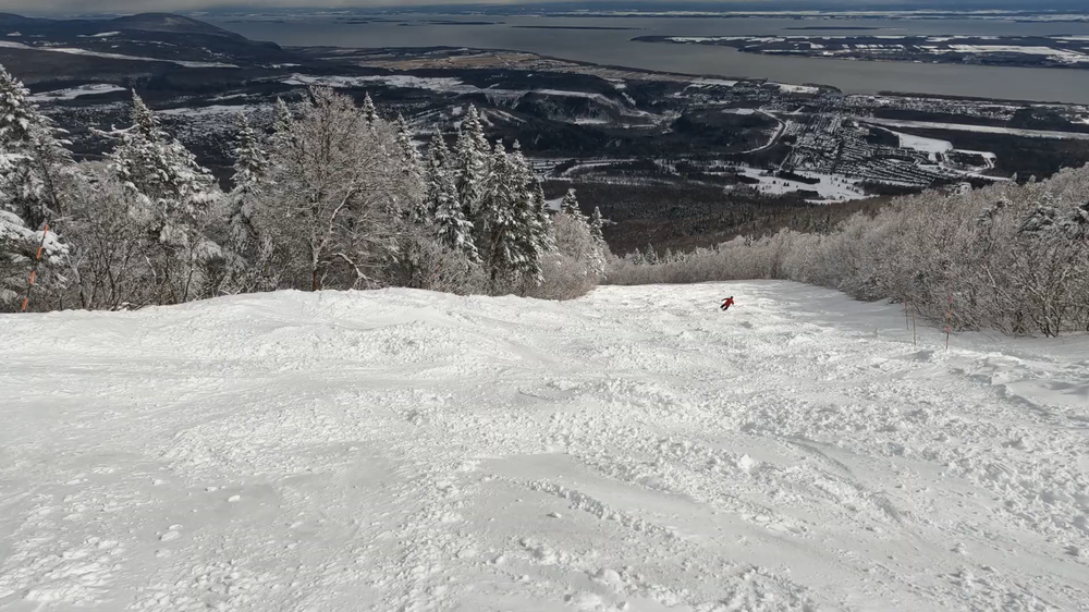 The vast majority of trails are supported by snowmaking infrastructure, and when combined with the mountain’s colder climate than parts of the U.S., key trails typically remain well-covered throughout the heart of winter. That said, Mont-Sainte-Anne is not immune to the East Coast’s trademark thaw cycles, which can cause melt-outs—with the south-facing front side, which includes all of the true expert terrain, being the most susceptible. That said, even during low-snow periods, the more sheltered northern face tends to hold snow quite well.